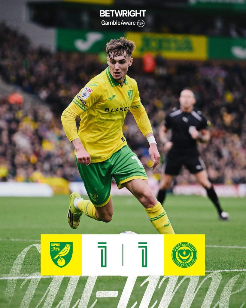 The match itself was a tense and hard-fought encounter, with both sides battling for control but ultimately forced to settle for a share of the points. While Portsmouth showed flashes of attacking quality, Norwich’s resilience ensured they remained difficult to break down on home soil.
