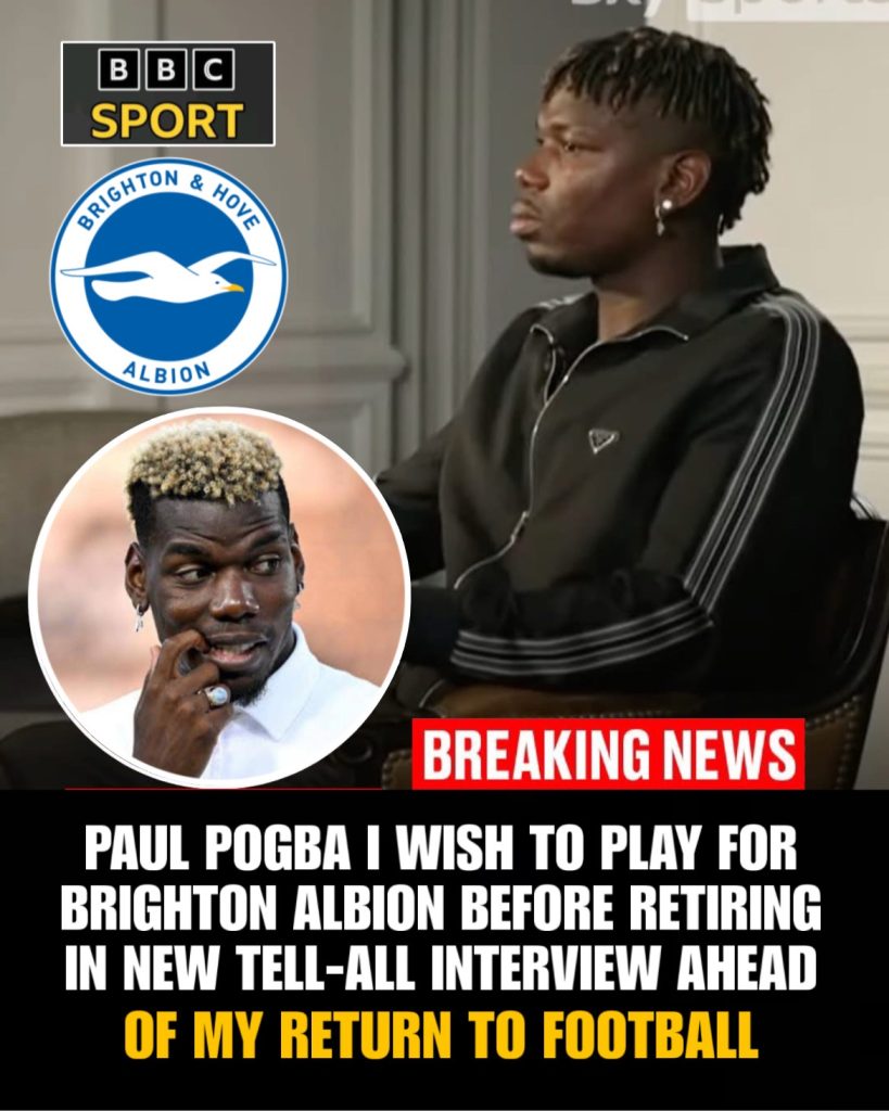 🚨 Paul Pogba Expresses Desire to Join Brighton & Hove Albion Before Retirement 🤝In a surprising revelation that has captured the attention of football fans everywhere, Paul Pogba has expressed a strong desire to play for Brighton & Hove Albion before bringing his illustrious career to a close. The World Cup-winning French midfielder, known for his creativity, vision, and technical mastery in midfield, appears to be seeking a new challenge in the Premier League, one that combines on-field influence with a meaningful final chapter in his career.