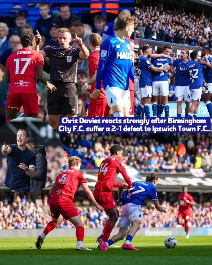 Chris Davies did not hold back in his assessment after Birmingham City F.C. were beaten 2-1 by Ipswich Town F.C. at Portman Road, with the Blues boss branding a key refereeing decision “scandalous.”