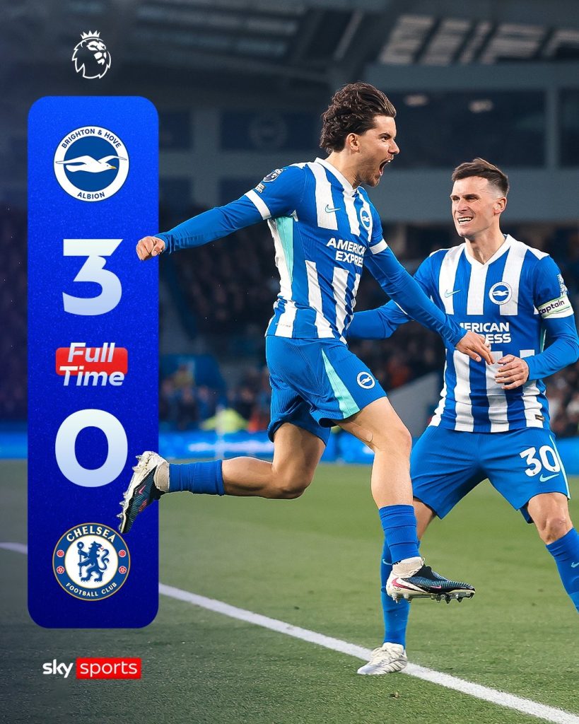 A dominant night at the Amex turned into a nightmare for Chelsea, as Brighton & Hove Albion delivered a ruthless 3-0 victory over Chelsea FC — but it wasn’t just the scoreline that left scars.