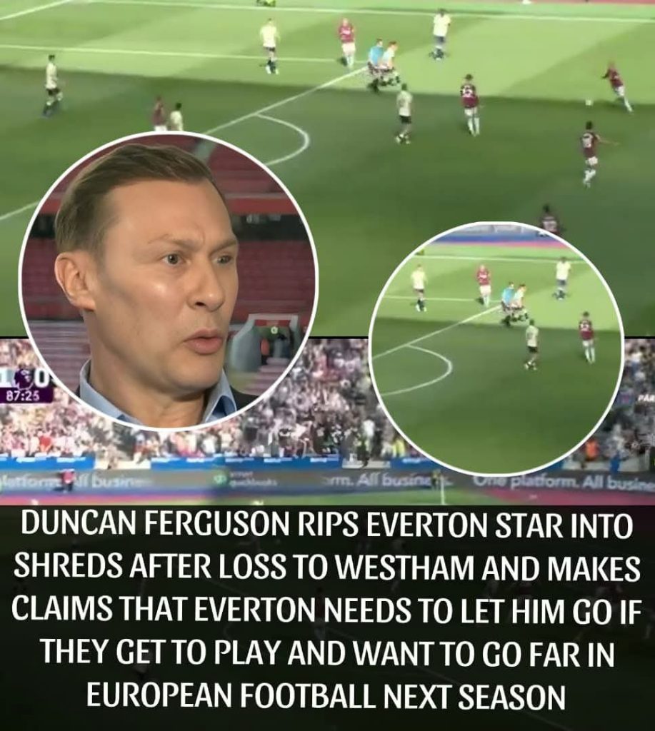 Everton legend Duncan Ferguson launched a blistering critique of striker Beto following the club’s frustrating 2-1 defeat to West Ham United at the London Stadium